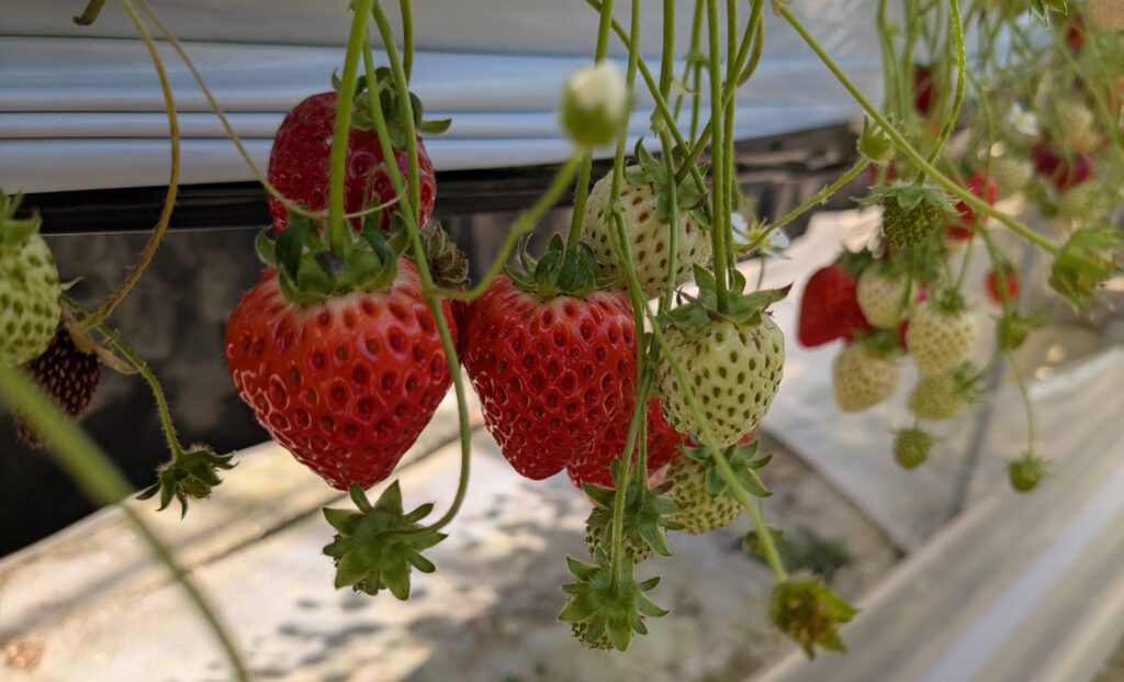 一般的ないちご(「一季なり性」)は、冬から春にかけて収穫期を迎えますが、「よつぼし」は日照時間や気温に左右されにくく、季節を問わず花を咲かせ実をつける性質を持っています。