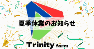 平素よりトリニティファームをご愛顧いただき、誠にありがとうございます。 誠に勝手ながら、下記の期間を夏季休業とさせていただきます。 【夏季休業期間】2025年8月11日(日)~8月17日(土) 休業期間中にいただいたお問 […]